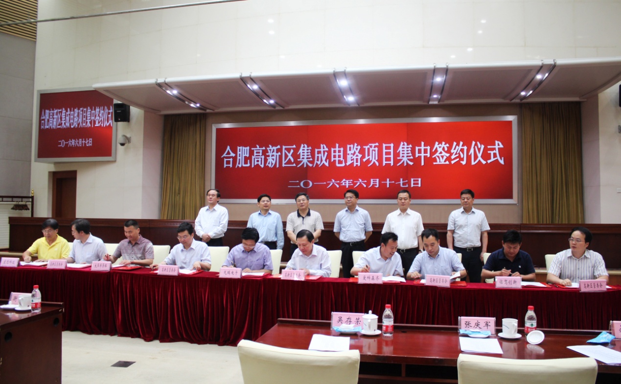 6月17日,臺(tái)灣群聯(lián)電子存儲(chǔ)芯片、臺(tái)灣敦泰科技顯示驅(qū)動(dòng)及觸控芯片等28個(gè)集成電路產(chǎn)業(yè)項(xiàng)目在合肥舉行集中簽約儀式,正式落戶合肥高新區(qū)。省委常委、合肥市委書記吳存榮會(huì)見集成電路企業(yè)負(fù)責(zé)人代表并出席項(xiàng)目簽約儀式。
