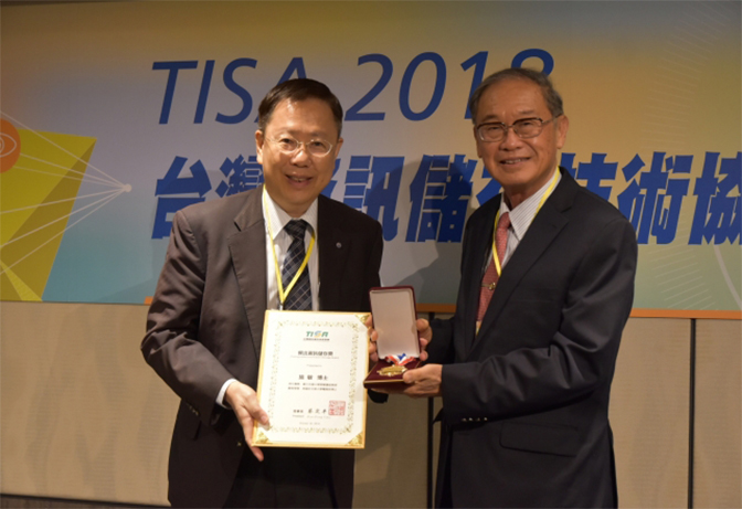 會(huì)上,頒發(fā)了第15屆臺(tái)灣信息儲(chǔ)存技術(shù)獎(jiǎng)項(xiàng),今年 “杰出信息儲(chǔ)存獎(jiǎng)?wù)隆钡锚?jiǎng)?wù)邽閲?guó)立交通大學(xué)終身講座教授施敏教授,他與其領(lǐng)導(dǎo)的團(tuán)隊(duì)在51年前發(fā)明了“浮動(dòng)閘極存儲(chǔ)效應(yīng)(Floating Gate Memory Effect)”,此獎(jiǎng)?wù)乱彩桥_(tái)灣信息儲(chǔ)存界最高的榮譽(yù)獎(jiǎng)。